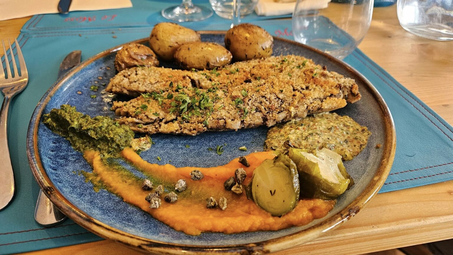 Une cuisine mijotée et atypique, composée de produits frais, avec un zeste d’inspiration italienne et asiatique par moments. J’ai souvenir d’une recette à base de fenouil et d’espadon inoubliable. Une ambiance douce et comptez en moyenne un budget autour de 25-35€ par personne. Un rapport qualité-prix quasiment imbattable dans la région.