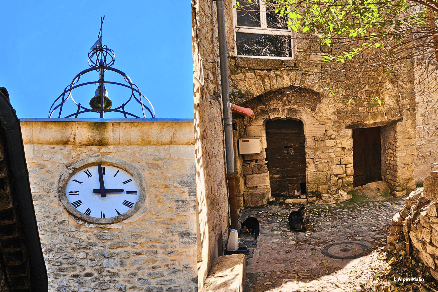 Clepsydre. 1861, Place du Monument. 14h58, 2026. Le temps qui passe résonne à tous les coins de rue, à bas bruit. Certains y percevront de la mélancolie heureuse, d’autres, en pleine conscience, ralentiront le rythme. Le tempo à Lurs est plus lent, comme si nous grapillions des minutes bonus sur notre existence. Même les chats semblent se la couler douce pour profiter au mieux de leurs « 7 vies ».