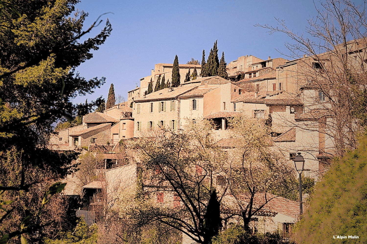 360°. Ce qui confère à l’ambiance aussi particulière de ce village-joyau, c’est l’entrelas de petites montées espiègles. Dans certains coins de rue, des volets béants profitent des panoramas sur le Val de Durance d’un côté, sur la montagne de Lure de l’autre.